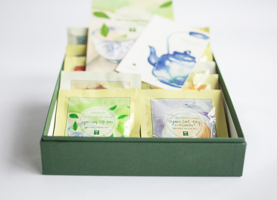 With the team, we set to work on designing a total of ten tea envelopes, ten retail boxes, ten mastercases, and a gift box. We explored various box options, paper textures, and specialty printing techniques. A standout design was a tall, matchbox-style box with sliding drawers which would allow for access to the teas from either side. Cafes and restaurants can puncture the bottom for easy accessibility for the teas. Selective areas were blind embossed for an elevated appearance.